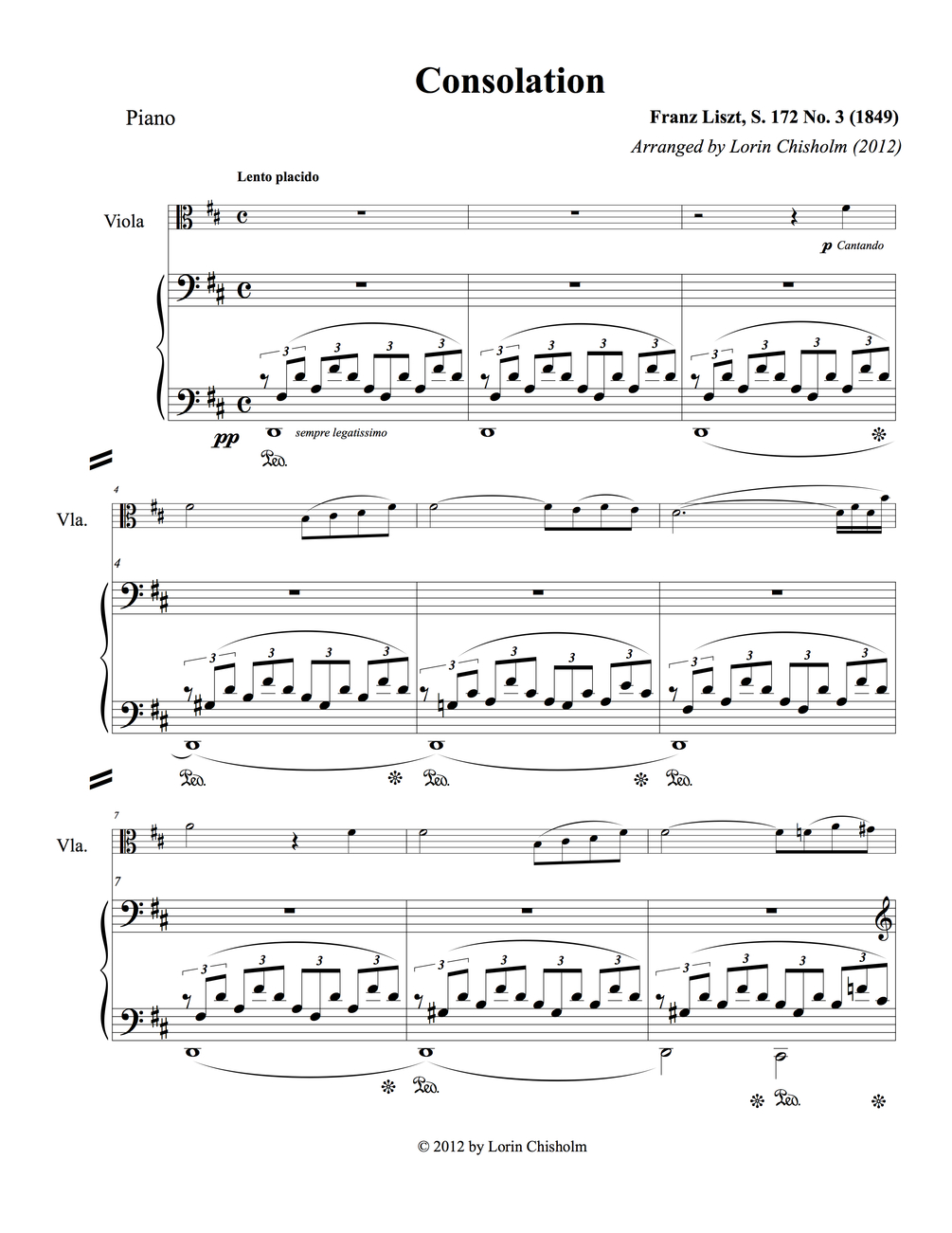 Liszt, Franz: Consolation, S.173 No. 3 (1849) for Viola and Piano